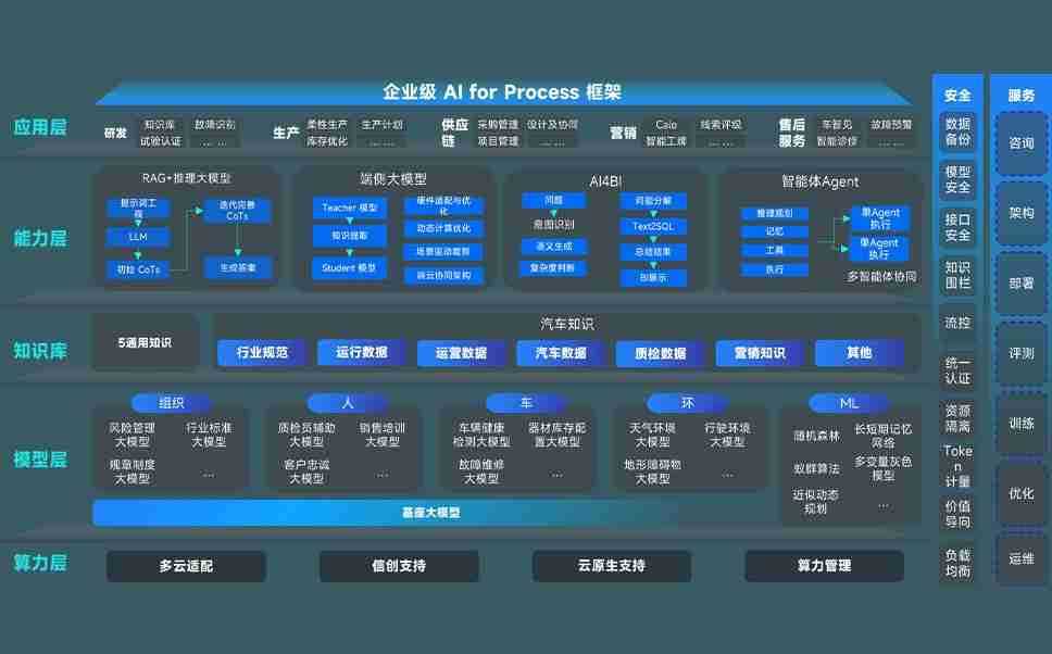 端到端的一站式AI工作空间深度融合了从企业战略规划到日常经营的全流程业务板块,,定向解决车企内部领域多、、、、部门多、、链条长、、场景碎片化等难题,,,,支持车企快速构建以AI为核心的生产力写作体系,,,实现任务执行与AI能力的无缝集成与交互